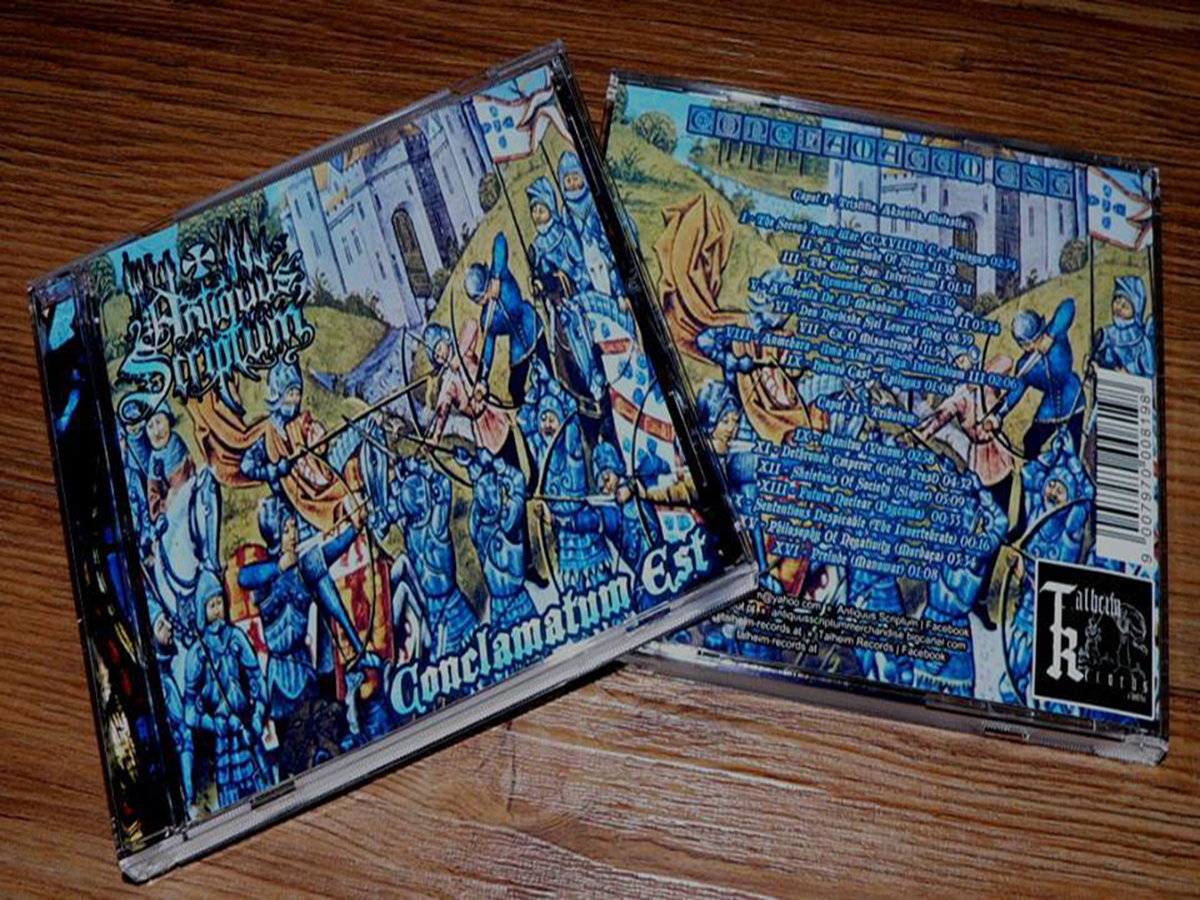 Antiquus Scriptum is a pagan black / viking metal band, w/ thrash metal, folk and ambiental influences, that rises from Portugal and held by Sacerdos Magus since the distant winter of 1998... Six original full-length albums, so far, and a great pile of parallel (physical) releases through several labels around the world! Submerged on the bloody pages of ancient history, mithology, etc... BEWARE!! ... more